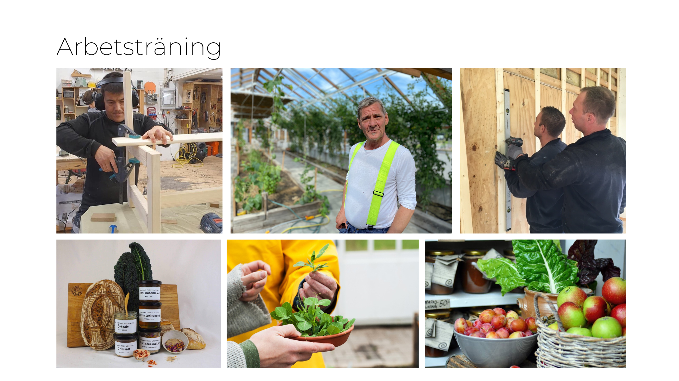 Arbetet skapar positiva rutiner och ger en känsla av sammanhang och mening. Vägen ut! kooperativen erbjuder arbetsträning inom flera branscher — kök, konferens, kafé, trädgård och odling, fastighetsservice, snickeri, trädgårdstjänster, screentryck, återbruk och design samt second hand. Vi arbetar enligt metoden Karriärstöd, en vägen-till-arbete-kedja i sociala företag. Tillsammans, i nära samverkan, med dig som arbetstränar och aktuella myndigheter görs en arbetsträningsplan med individuella lösningar.